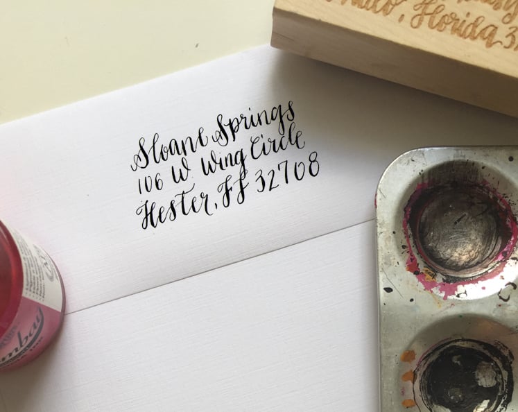 Add a custom touch to your outgoing mail! This custom calligraphy stamp is hand lettered and makes a perfect gift; offer congratulations on a move, shower the newlyweds, or surprise the graduate. There's always the option of treating yourself too!